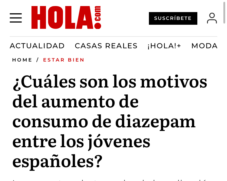 Colaboración con la Revista HOLA. ¿Cuáles son los motivos del aumento de consumo de diazepam entre los jóvenes españoles?