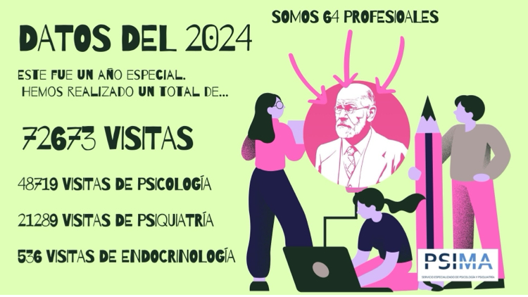 Este 2024 ha sido un año muy importante para el equipo PSIMA. Es un año en donde nuestra carga asistencial creció un 55% en comparación al año 2023. El crecimiento del trabajo del equipo tiene a destacar dos asuntos importantes. Por un lado es que hemos crecido como equipo ya que terminamos